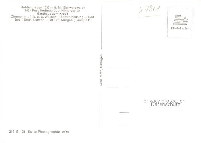 41811982 Hohlengraben Gasthaus zum Kreuz postalisch nicht gelaufen Erhaltung siehe scans KatCode: 11110008315016