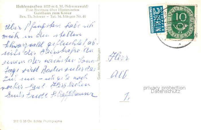 33623797 alte Postkarte Hohlengraben Gasthaus zum Kreuz postalisch gelaufen Erhaltung siehe scans [PaolaD17] KatCode: 11110008315016