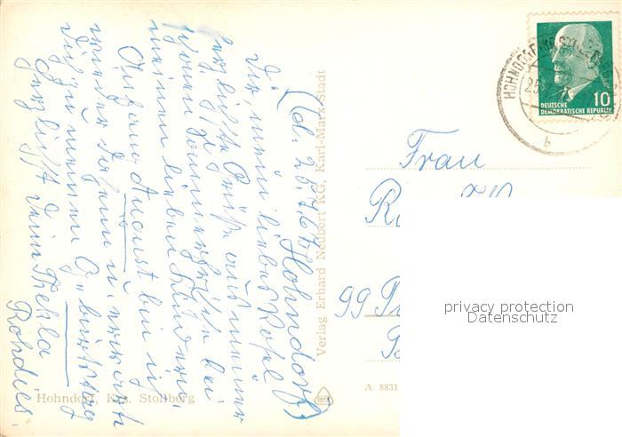 73593303 alte Postkarte Hohndorf Stollberg Ansicht vom Waldrand aus postalisch gelaufen Erhaltung siehe scans [FriedD77] KatCode: 11110014188100