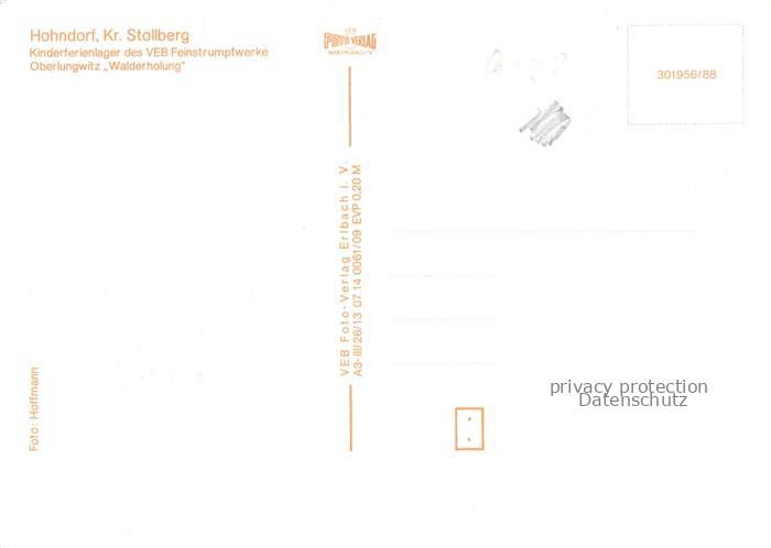 74096449 Hohndorf Stollberg Glauchau Erzgebirgskrei Kinderferienlager Walderholung postalisch nicht gelaufen Erhaltung siehe scans [WerneD78] KatCode: 11110014188100