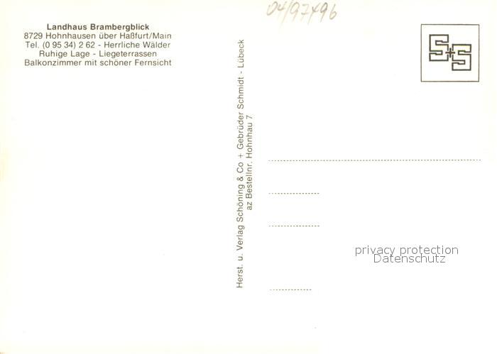 73659790 Hohnhausen Landhaus Brambergblick Restaurant Panorama Hassberge postalisch nicht gelaufen Erhaltung siehe scans [FriedD77] KatCode: 11110009674121