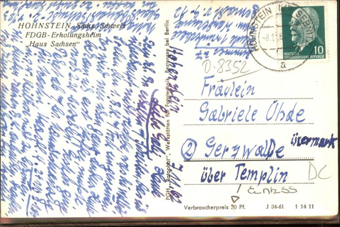 Hohnstein FDGB Erholungsheim Haus Sachsen