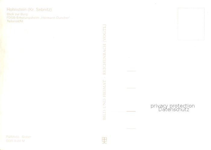 73062345 Hohnstein Saechsische Schweiz Burg FDGB Erholungsheim Hermann Duncker postalisch nicht gelaufen Erhaltung siehe scans [KathaD81] KatCode: 11110014287160