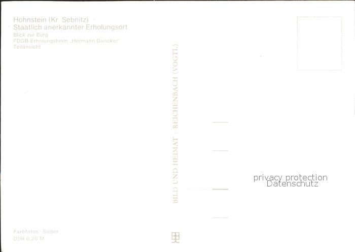 72324102 Hohnstein Saechsische Schweiz Burg FDGB Heim Hermann Duncker Teilansicht postalisch nicht gelaufen Erhaltung siehe scans KatCode: 11110014287160