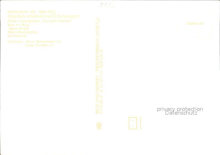 72313557 Hohnstein Saechsische Schweiz FDGB Erholungsheim Hermann Duncker Burg Obere Strasse Maerzenbecherbluete Polenztal postalisch nicht gelaufen Erhaltung siehe scans KatCode: 11110014287160