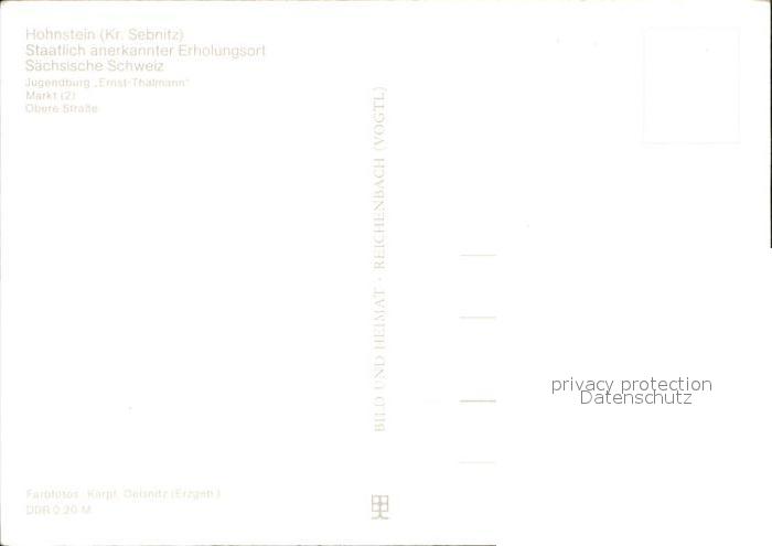 72324133 Hohnstein Saechsische Schweiz Jugendburg Ernst Thaelmann Markt Obere Strasse postalisch nicht gelaufen Erhaltung siehe scans KatCode: 11110014287160