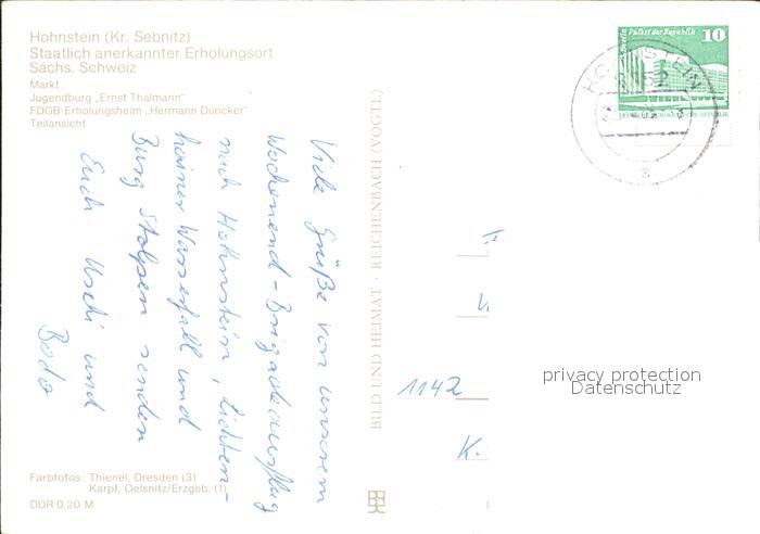 71983147 alte Postkarte Hohnstein Saechsische Schweiz Jugendburg Ernst Thalmann Markt postalisch gelaufen Erhaltung siehe scans KatCode: 11110014287160