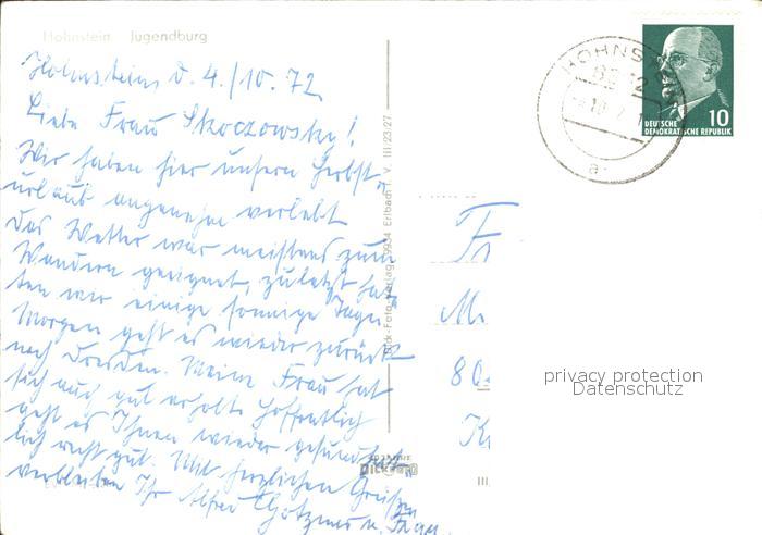 72446375 alte Postkarte Hohnstein Saechsische Schweiz Jugendburg postalisch gelaufen Erhaltung siehe scans KatCode: 11110014287160