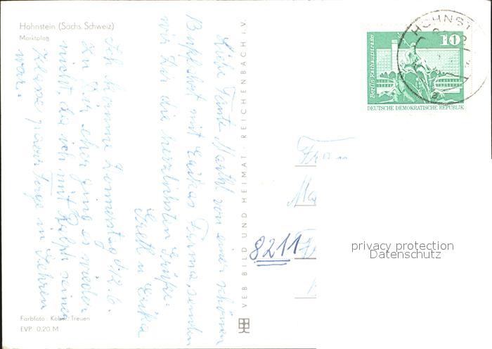 72409777 alte Postkarte Hohnstein Saechsische Schweiz Marktplatz postalisch gelaufen Erhaltung siehe scans KatCode: 11110014287160