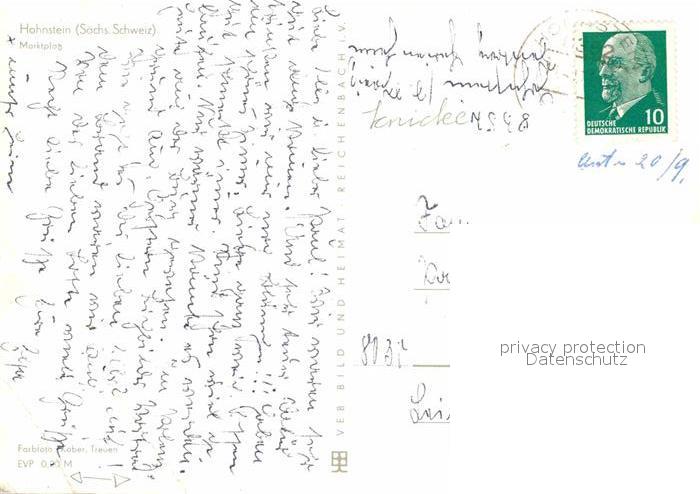 72750736 alte Postkarte Hohnstein Saechsische Schweiz Marktplatz postalisch gelaufen Erhaltung siehe scans [KathaD81] KatCode: 11110014287160