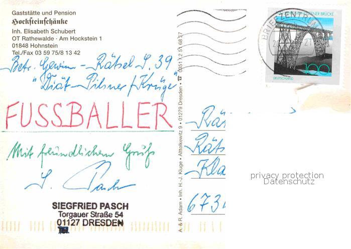 72743023 alte Postkarte Hohnstein Saechsische Schweiz Restaurant Pension Hocksteinschaenke postalisch gelaufen Erhaltung siehe scans [LiesaD40] KatCode: 11110014287160