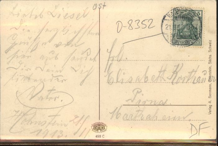 40971441 Hohnstein Schloss Hotel Schweizergarten postalisch gelaufen Alte Ansichtskarte Postkarte alte Postkarte Katcode 11110014287160