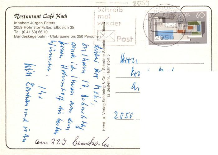 73881651 alte Postkarte Hohnstorf Elbe Cafe Koch Terrasse Gastraum Bar postalisch gelaufen Erhaltung siehe scans [WerneD78] KatCode: 11110003355019