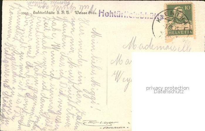 11853214 alte Postkarte Hohtuerlihuette mit Weisse Frau postalisch gelaufen Erhaltung siehe scans KatCode: 11470410195502