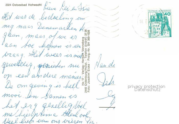 72772828 alte Postkarte Hohwacht Ostseebad Fliegeraufnahme postalisch gelaufen Erhaltung siehe scans [WerneD78] KatCode: 11110001057030