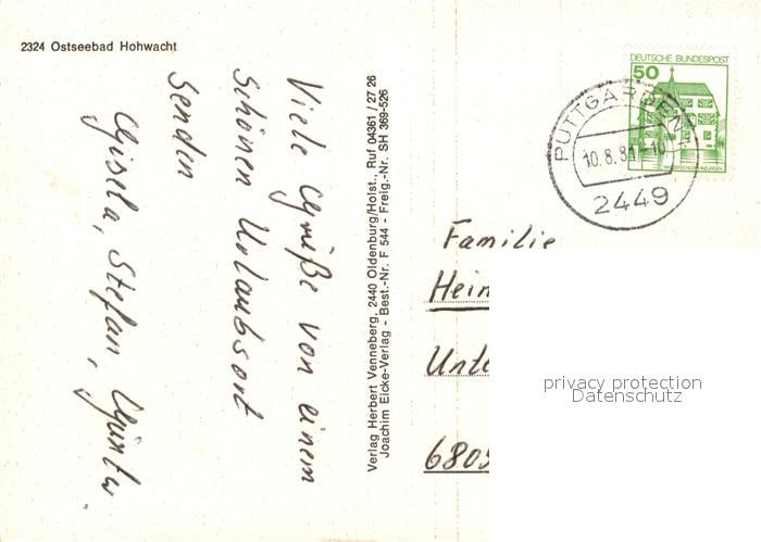 73070729 alte Postkarte Hohwacht Ostseebad Fliegeraufnahme postalisch gelaufen Erhaltung siehe scans [FriedD77] KatCode: 11110001057030