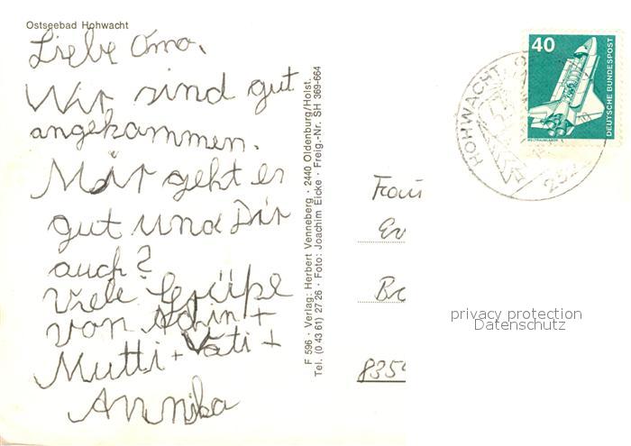 73026616 alte Postkarte Hohwacht Ostseebad Fliegeraufnahme postalisch gelaufen Erhaltung siehe scans [KathaD81] KatCode: 11110001057030