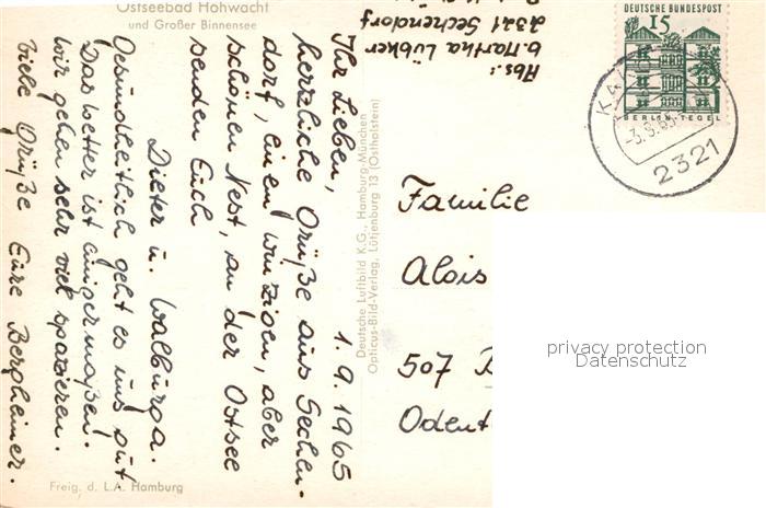 72993814 alte Postkarte Hohwacht Ostseebad Fliegeraufnahme Grosser Binnensee postalisch gelaufen Erhaltung siehe scans [AndreD76] KatCode: 11110001057030