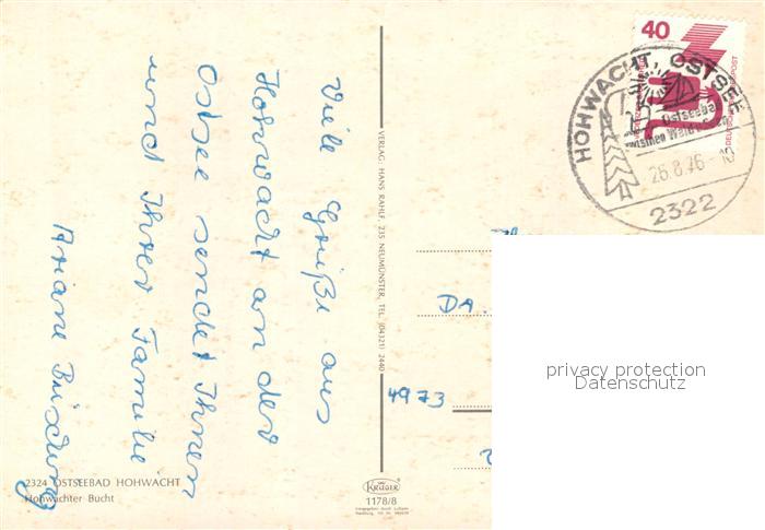 73106535 alte Postkarte Hohwacht Ostseebad Fliegeraufnahme Hohwachter Bucht postalisch gelaufen Erhaltung siehe scans [KathaD81] KatCode: 11110001057030