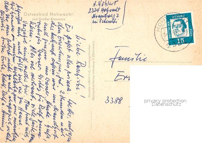 73127257 alte Postkarte Hohwacht Ostseebad Fliegeraufnahme mit Strand postalisch gelaufen Erhaltung siehe scans [LiesaD40] KatCode: 11110001057030