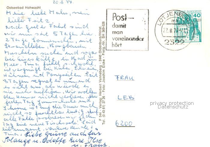 73123267 alte Postkarte Hohwacht Ostseebad Fliegeraufnahme mit Strand postalisch gelaufen Erhaltung siehe scans [LiesaD40] KatCode: 11110001057030
