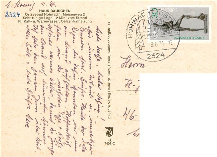 73878112 alte Postkarte Hohwacht Ostseebad Haus Rauschen postalisch gelaufen Erhaltung siehe scans [FriedD77] KatCode: 11110001057030