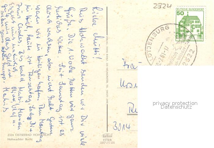 73100997 alte Postkarte Hohwacht Ostseebad Hohwachter Bucht Fliegeraufnahme postalisch gelaufen Erhaltung siehe scans [WerneD78] KatCode: 11110001057030