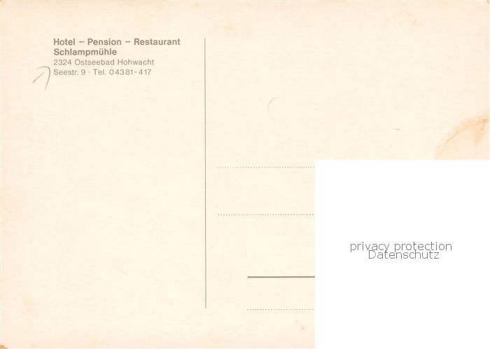 73867739 Hohwacht Ostseebad Hotel Pension Schlampmuehle postalisch nicht gelaufen Erhaltung siehe scans [FriedD77] KatCode: 11110001057030
