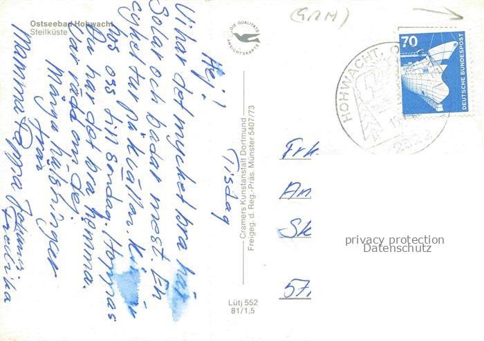 74148750 alte Postkarte Hohwacht Ostseebad Schleswig-Holstein Panorama Steilkueste postalisch gelaufen Fliegeraufnahme Erhaltung siehe scans [FriedD77] KatCode: 11110001057030