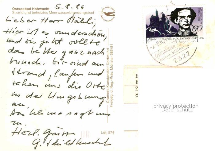 72654573 alte Postkarte Hohwacht Ostseebad Strand Meerwasserbrandungsbad Fliegeraufnahme postalisch gelaufen Erhaltung siehe scans [FriedD77] KatCode: 11110001057030