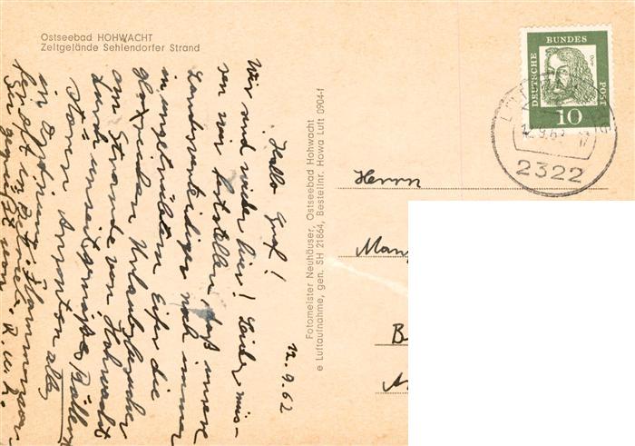 73944713 alte Postkarte Hohwacht Ostseebad Zeltgelaende Sehlendorfer Strand postalisch gelaufen Erhaltung siehe scans [WerneD78] KatCode: 11110001057030