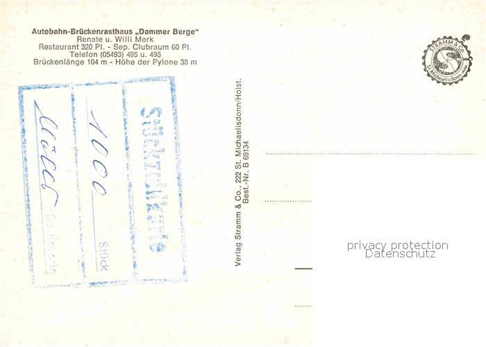 72854505 Holdorf Niedersachsen Autobahn-Brueckenrasthaus Dammer Berge postalisch nicht gelaufen Erhaltung siehe scans [LiesaD40] KatCode: 11110003460005