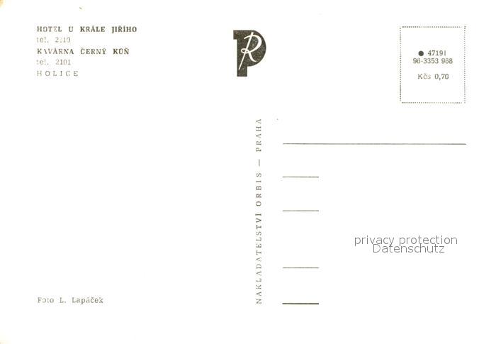 Holice Cechach Hotel U Krale Jiriho postalisch nicht gelaufen Erhaltung siehe scans [LiesaD40]