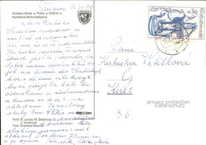 old postcard Holice Cechach Pamatnik Mirka Nespora postalisch gelaufen Erhaltung siehe scans