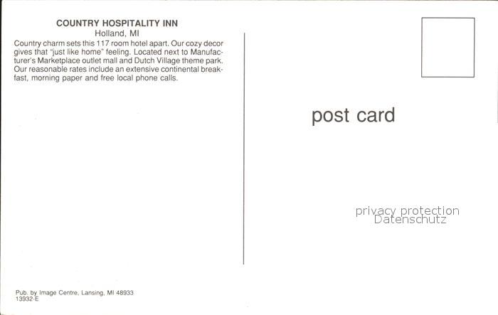 72460041 Holland Michigan country Hospitality Inn postalisch nicht gelaufen Erhaltung siehe scans KatCode: 14140240000000