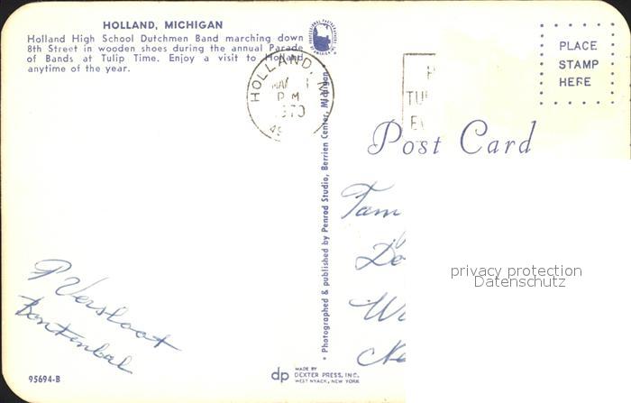 72285185 old postcard Holland Michigan High School Dutchman Band Parade postalisch gelaufen Erhaltung siehe scans KatCode: 14140240000000