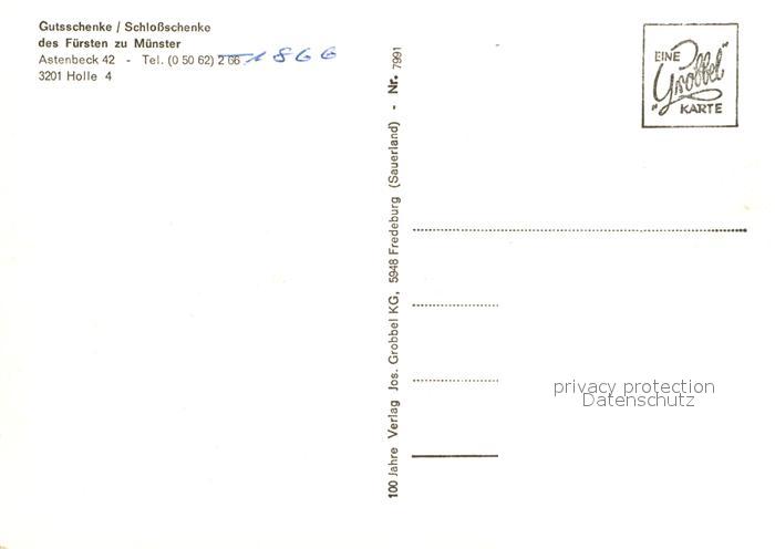 72959753 Holle Hildesheim Gutsschenke Schlossschenke Fuersten zu Muenster postalisch nicht gelaufen Erhaltung siehe scans [NatalD47] KatCode: 11110003254022