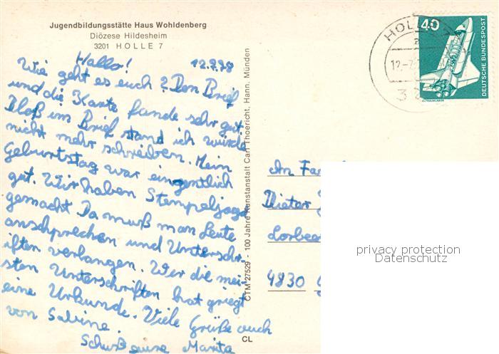 73764424 alte Postkarte Holle Hildesheim Jugendbildungswerk Haus Wohldenberg postalisch gelaufen Erhaltung siehe scans [FriedD77] KatCode: 11110003254022