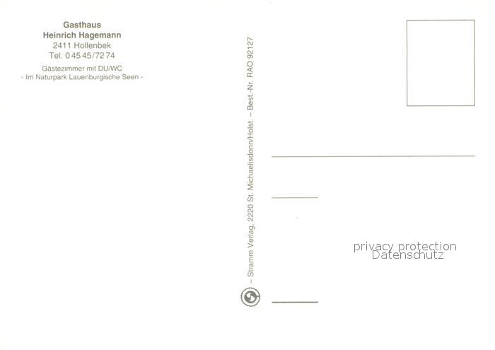 73661037 Hollenbek Gasthaus Hagemann Fremdenzimmer Naturpark Lauenburgische Seen postalisch nicht gelaufen Erhaltung siehe scans [FriedD77] KatCode: 11110001053054