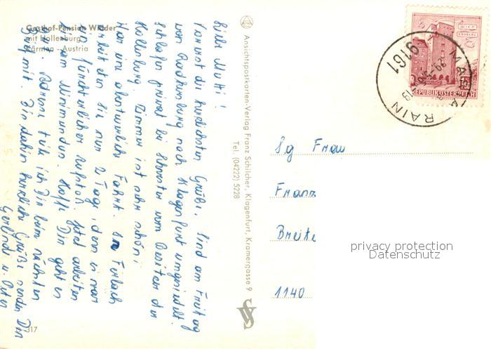 73034347 alte Postkarte Hollenburg Kaernten Gasthof-Pension Widder postalisch gelaufen Erhaltung siehe scans [PaolaD17] KatCode: 11390211020201