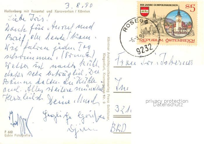 73020596 alte Postkarte Hollenburg Kaernten mit Rosental und Karawanken postalisch gelaufen Erhaltung siehe scans [WerneD78] KatCode: 11390211020201