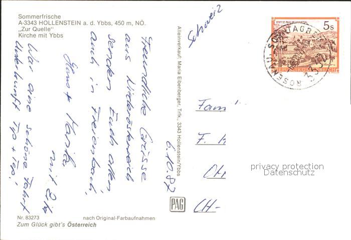 72294520 alte Postkarte Hollenstein Ybbs Niederoesterreich Quelle Kiche postalisch gelaufen Erhaltung siehe scans KatCode: 11390121030516