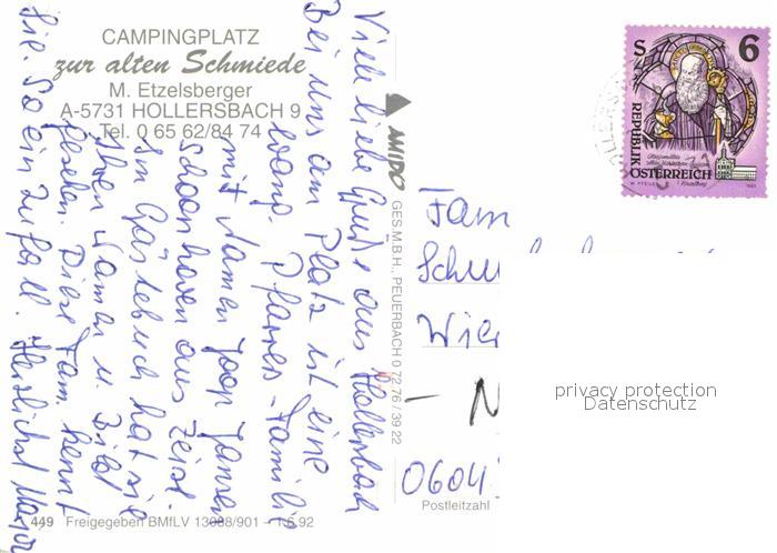 72846883 alte Postkarte Hollersbach Pinzgau Fliegeraufnahme Campingplatz postalisch gelaufen Erhaltung siehe scans [KathaD81] KatCode: 11390322050605