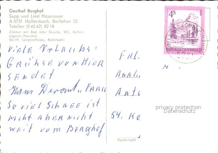 72308572 alte Postkarte Hollersbach Pinzgau Gasthof Berghof Hasenauer postalisch gelaufen Erhaltung siehe scans KatCode: 11390322050605