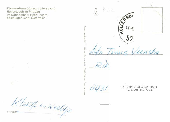 72906892 alte Postkarte Hollersbach Pinzgau Klausnerhaus postalisch gelaufen Erhaltung siehe scans [LiesaD40] KatCode: 11390322050605