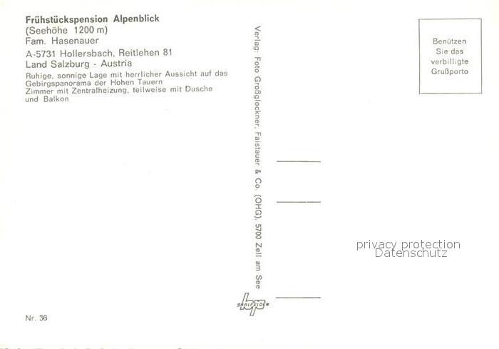 13221104 Hollersbach Pinzgau Pension Alpenblick postalisch nicht gelaufen Erhaltung siehe scans [LiesaD40] KatCode: 11390322050605