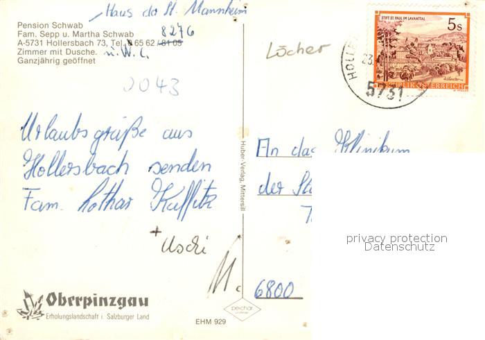 73070520 alte Postkarte Hollersbach Pinzgau Pension Schwab Gastraum Alpenpanorama postalisch gelaufen Erhaltung siehe scans [FriedD77] KatCode: 11390322050605