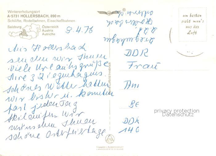 73779375 alte Postkarte Hollersbach Pinzgau Skilifte Rodelbahnen Eisschiessbahnen Fliegeraufnahme postalisch gelaufen Erhaltung siehe scans [WerneD78] KatCode: 11390322050605