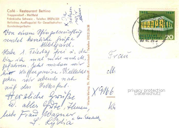 72641449 alte Postkarte Hollfeld Cafe Restaurant Bettina postalisch gelaufen Erhaltung siehe scans [FriedD77] KatCode: 11110009472154