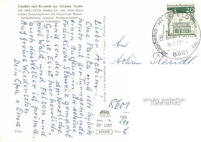 72719725 alte Postkarte Hollfeld Gasthaus und Brauerei zur weissen Taube postalisch gelaufen Erhaltung siehe scans [LiesaD40] KatCode: 11110009472154